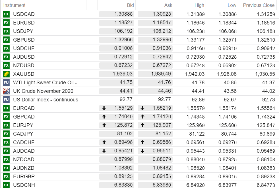FX open (6:00 am EDT) High, Low, and previous close
