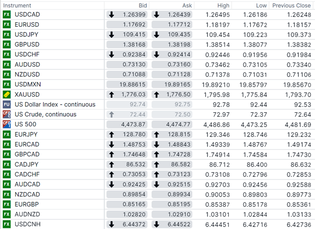 US dollar opens with gains compared to yesterday, CAD outperforms