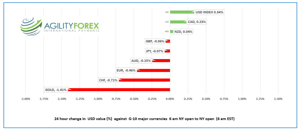 The US dollar started the NY session with gains against the G-10 majors except against NZD and CAD. It would appear that dollar buying because of prospects for fiscal stimulus overwhelmed dollar selling due to proposed tax hikes.
