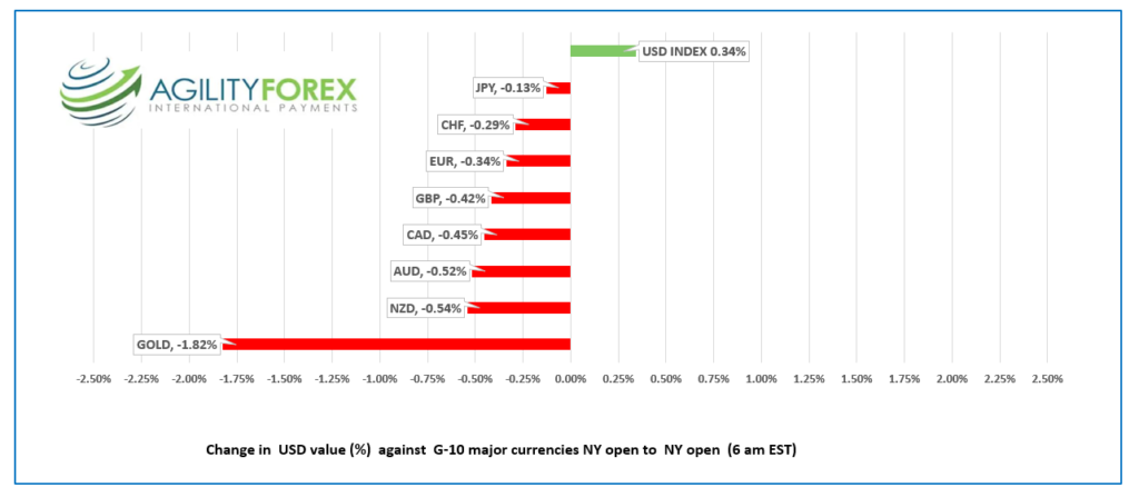US dollar opens higher against G-10 majors, Gold slides 1.82%
