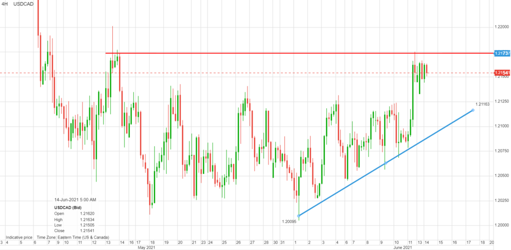 USDCAD traders ignored the surge in crude prices, preferring to focus on broad US dollar sentiment ahead of Wednesday’s FOMC meeting. US dollar sentiment is bullish due to concerns the Fed will issue a more hawkish statement in recognition of higher inflation. However, it is probably too soon for the Fed to admit it is wrong.