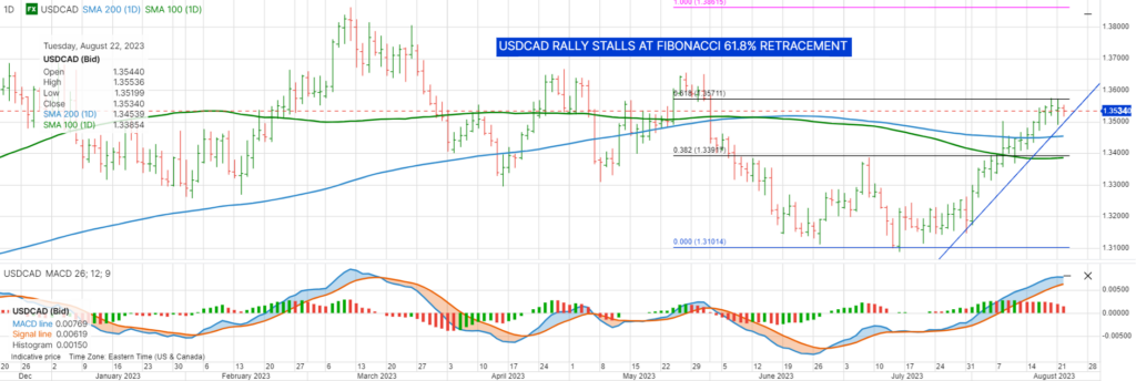 The dearth of top-tier actionable economic data has traders reacting to speculation about the tone of speeches from the likes of Fed Chair Jerome Powell and ECB President Christine Lagarde at the Jackson Hole Symposium. We may get more insight from speeches by Chicago Fed President Austan Goolsbee and Fed Governor Michelle Bowman. A couple of weeks ago, Mr. Goolsbee said he wanted to see inflation develop more of a trend before the Fed stops hiking rates. Ms. Bowman was more hawkish and said the Fed needs to keep raising rates. If they stick with those views, markets may assume Powell will utter similar thoughts.