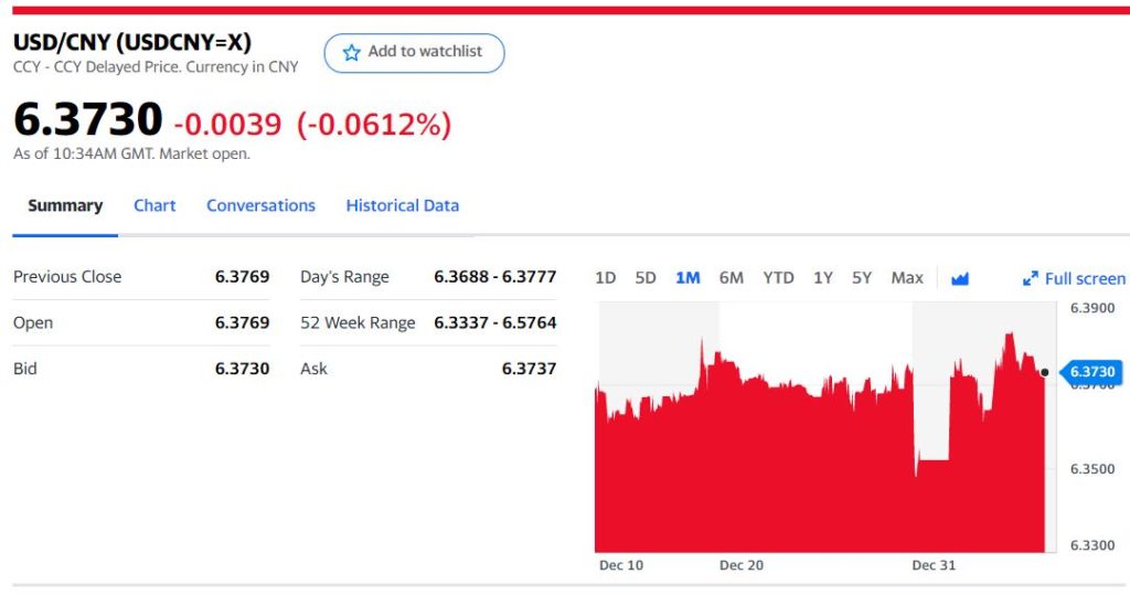 Today’s Bank of China Fix 6.3653, previous 6.3742