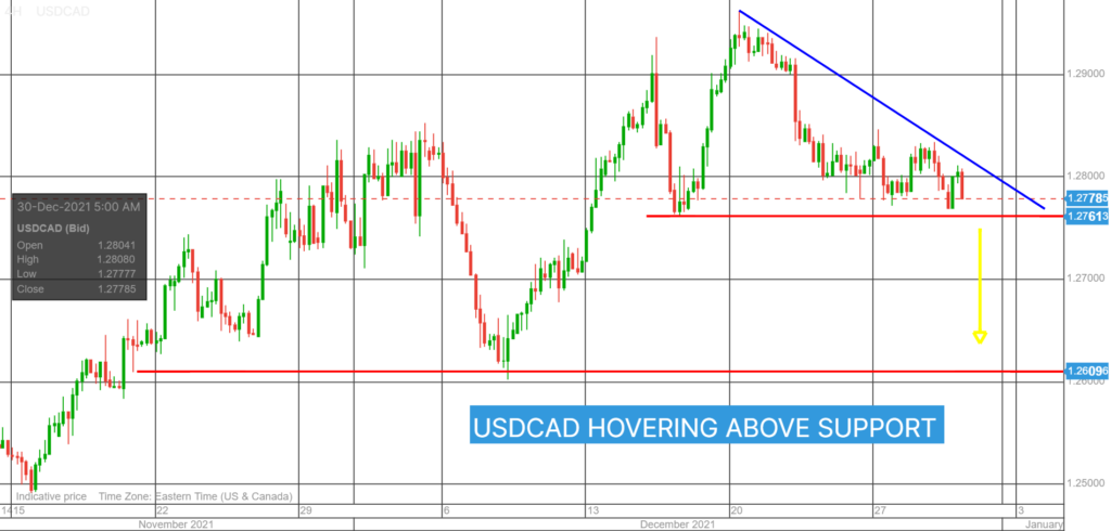 USDCAD may be vulnerable to month and year-end portfolio rebalancing selling pressures.