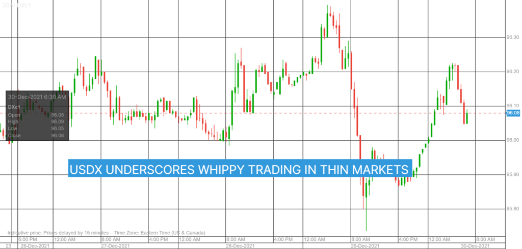 The US dollar index (USDX) is bouncing between 95.87 and 96.23, reflecting the poor liquidity in FX markets.