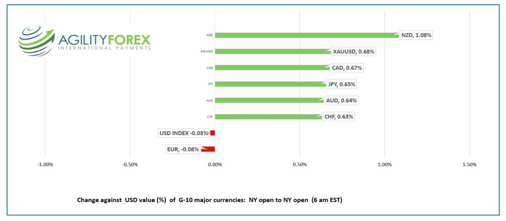 The improvement in global risks sentiment lifted S&P 500 futures 0.87%, and DJIA futures 0.61% while WTI oil and gold rose 1.68% and 0.80% respectively.