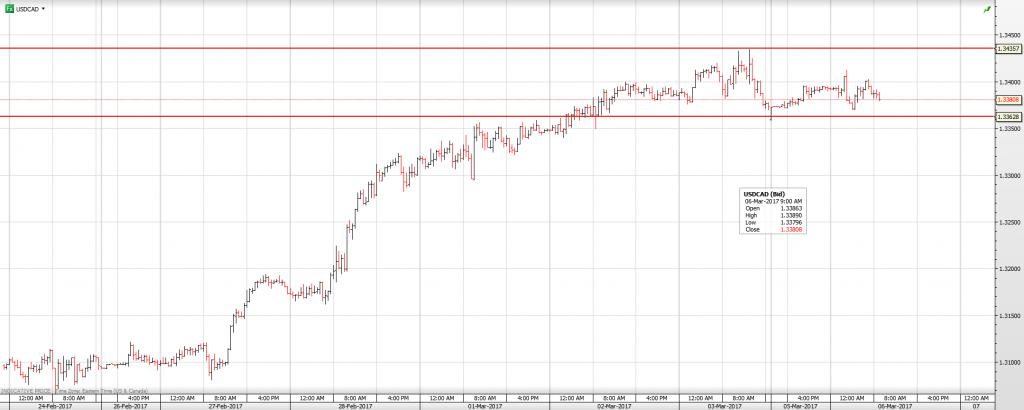 USDCAD traded quietly within a narrow range but with a bullish bias due to divergent Canada/US interest rate policies.