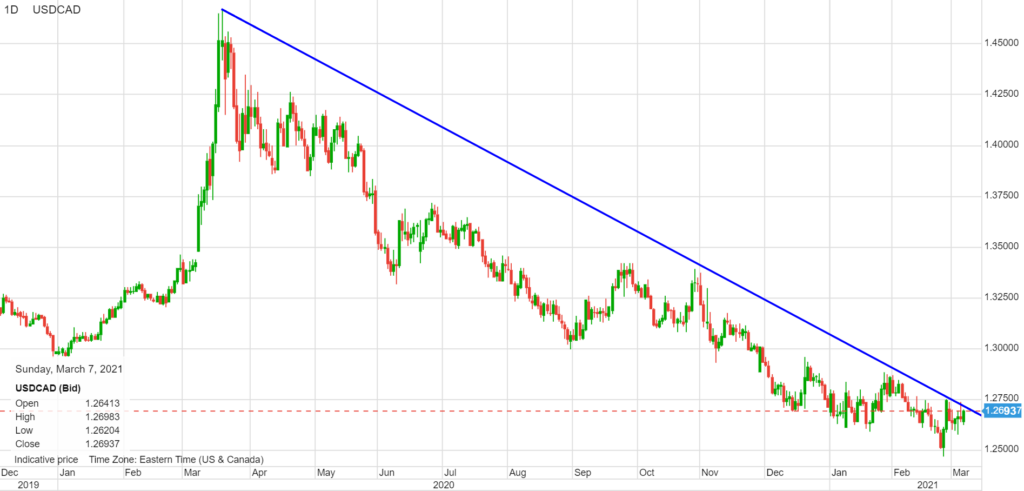 USDCAD Technicals:  The intraday USDCAD technicals are bullish above 1.2640 looking for a break of the March 2020 downtrend line at 1.2720 to extend gains toward 1.2850.  Failure to take out 1.2720 suggests the rally is merely a correction.  For today, USDCAD support is at 1.2640 and 1.2610.  Resistance is at 1.2720  and 1.2750. Todays Range 1.2640-1.2710