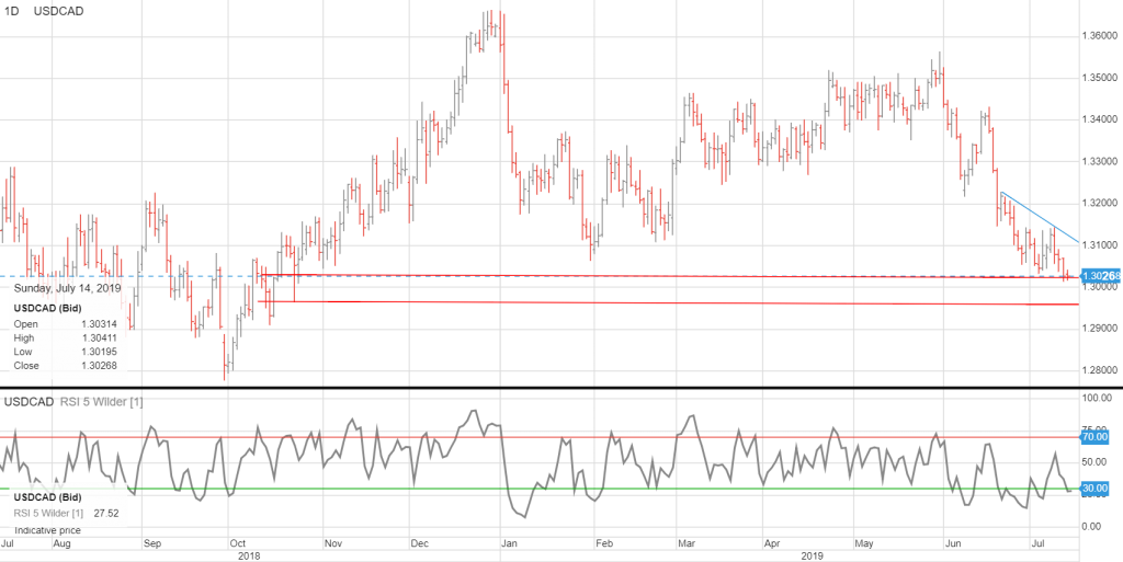 The US dollar closed out last week with losses across the board against the G-10 major currency pairs, led by a 1.20% rise in NZDUSD.  Fed Chair Powell’s dovish testimony saying “many FOMC participants saw that a case for a somewhat more accommodative monetary policy had strengthened” all but confirmed a July 31st rate cut.