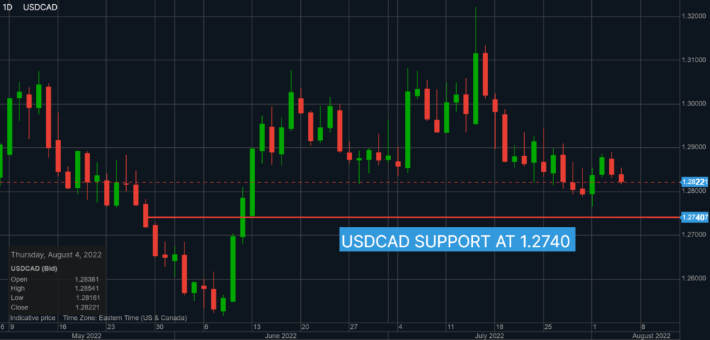 For today, USDCAD support is at 1.2805 and 1.2740. Resistance is at 1.2860 and 1.2890. Today’s Range 1.2805-1.2860