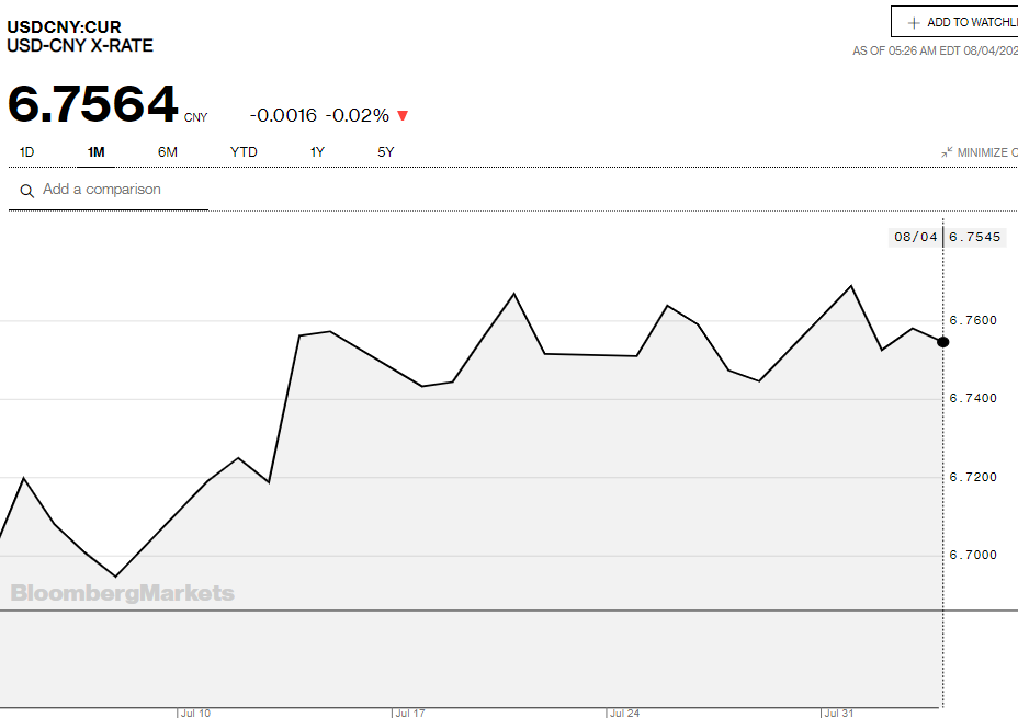 Today’s Bank of China Fix: 6.7636, previous 6.7813