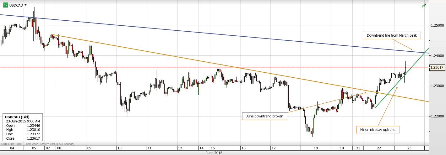 The rising US dollar has lifted USDCAD which has tested resistance in the 1.2380 area. EURCAD selling and WTI oil prices holding steady in the $60.00/bbl area have helped to slow the dollar’s rise but the Loonie is still vulnerable to further weakness.