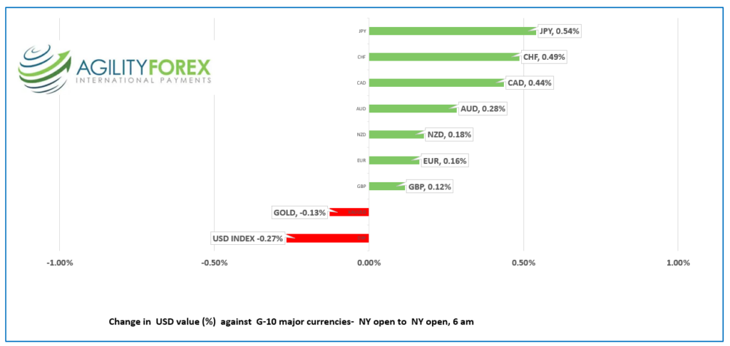 The US dollar dropped, stocks rose, and Treasury yields dropped to 3.89% from 3.94% on the news.