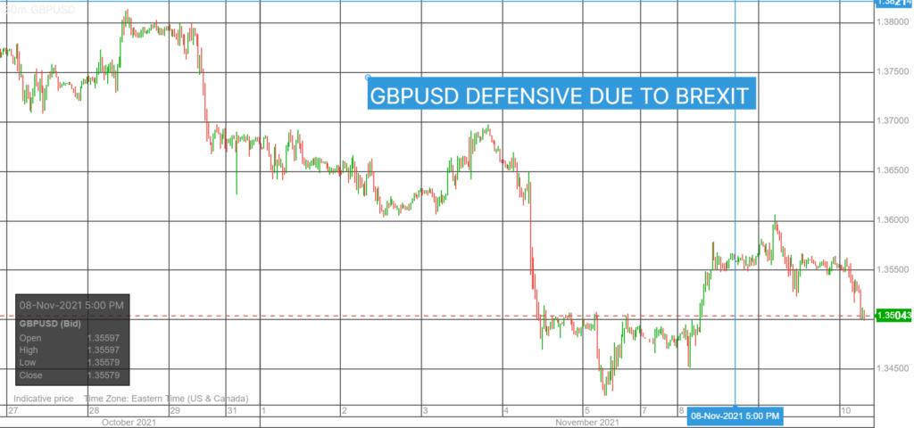GBPUSD followed EURUSD lower, dropping from 1.3564 to 1.3502 in NY due to general US dollar strength. GBPUSD gains may be limited until the EU and UK resolve differences around French fishing rights and the Irish Border.