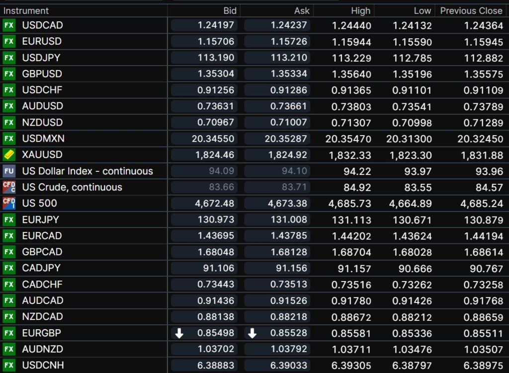 FX open, high, low, previous close