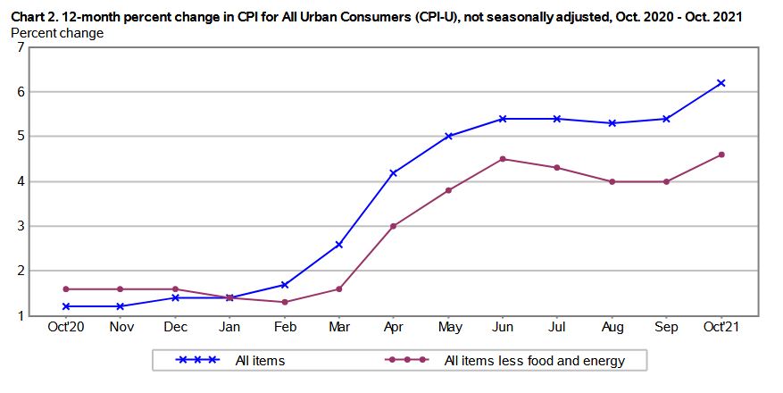 • US inflation surges 6.2% y/y in October, Jobless claims fall again