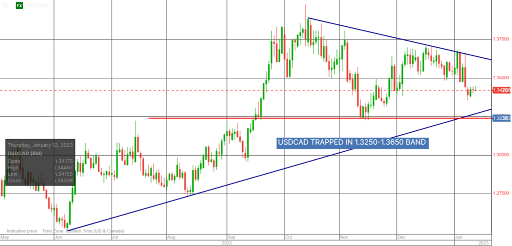 USDCAD is closely tracking US dollar moves and general risk sentiment, while deriving a bit of additional support from higher crude prices. The perception that the BoC is more dovish than the Fed may be challenged after today’s CPI data which fueled speculation the Fed will only hike rates 25 bps on February 1.