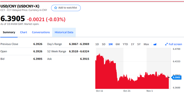 Chart: USDCNY 1 month