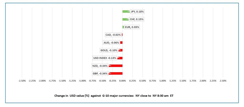 The US dollar rode an election roller coaster. There were plenty of ups and downs, with yesterday’s gains evaporating with polling results. FX markets opened in a mild risk-averse mood, as safe-haven currencies JPY and CHF opened higher compared to Tuesday’s NY open, while the commodity currency bloc is flat to negative.