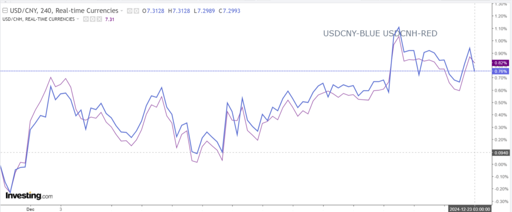 Chart: USDCNY and USDCNH -Daily 4 hour.