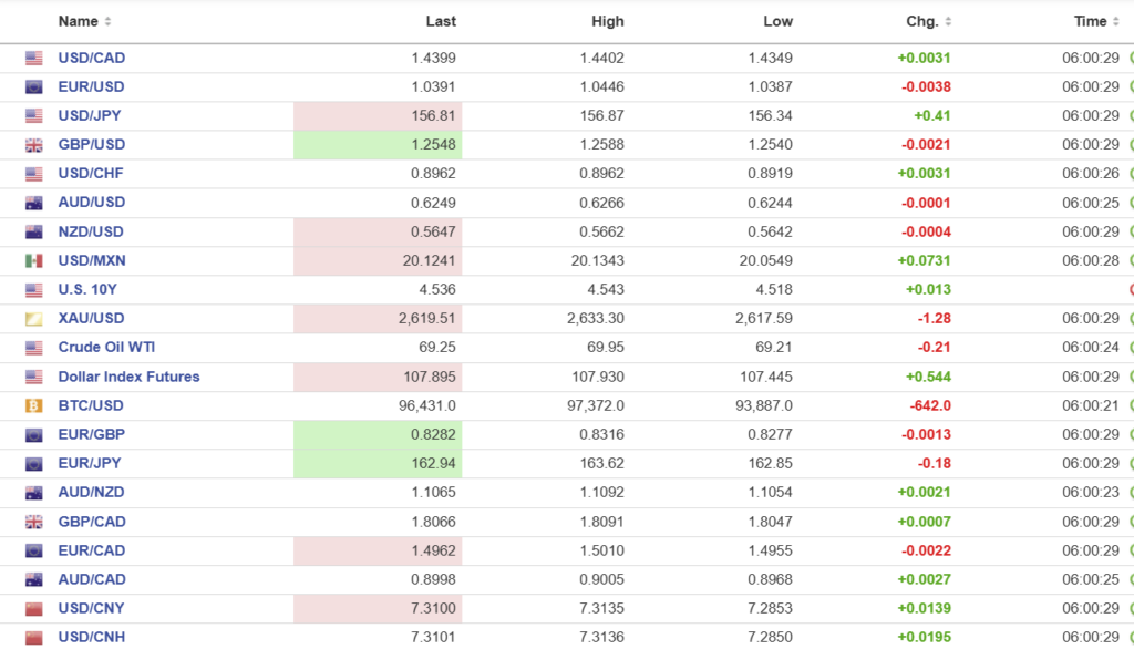 FX high, low, open (as of 6:00 am ET)