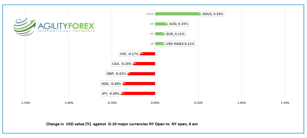 Asian equity indexes followed Wall Street’s lead and closed with gains.  Japan’s Nikkei 225 index rose 1.03 % while Australia’s ASX 200 gained 0.90%.  European bourses opened in positive territory then extended gains. The German Dax index is up 0.80% while the UK FTSE 100 index is 0.63% higher (as of 6:30 am). S&P 500 futures have risen 0.19% and the US 10-year Treasury yield ticked down to 3.574% from 3.611% yesterday. Gold and oil prices are modestly higher.