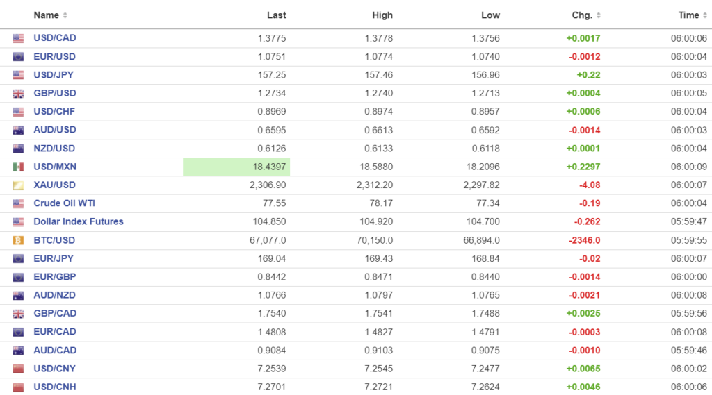 FX high, low, open (as of 6:00 am ET)