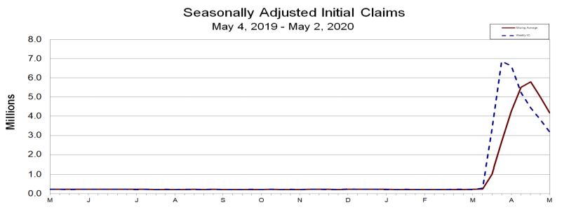 - Initial Jobless claims 3.2 million compared to 3.8 million last week