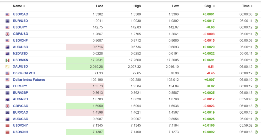 FX high, low, open (as of 6:28 am ET)