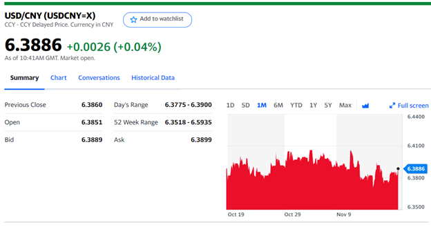 Today’s Bank of China Fix 6.3825 Previous 6.3803