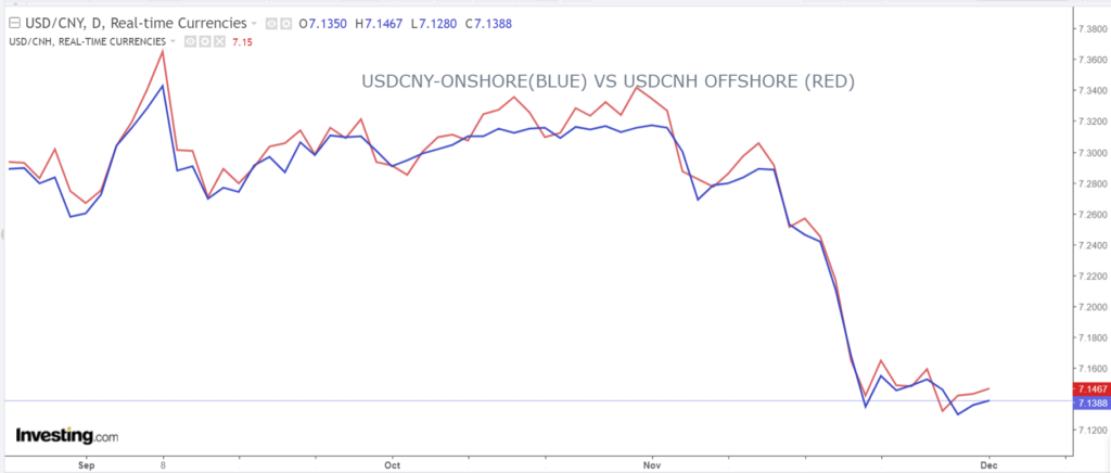 Chart: USDCNY (onshore) vs USDCNH (offshore)