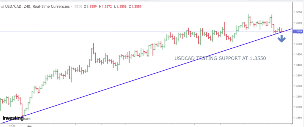 Today’s lower than expected ADP data, alongside weaker than forecast US Q2 GDP  weighed on USDCAD as it supports the idea that the Fed will cease raising interest rates. ADP Employment rose 177,000 (forecast 195,000, July 371,000) while Q2 GDP rose 2.0% compared to expectations for 2.2% growth.