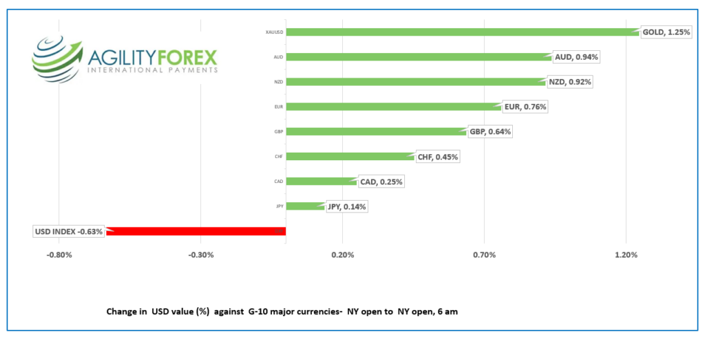 • USD opens lower compared to Tuesday with AUD outperforming.