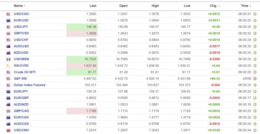 The winds of change are blowing. In Florida and the Carolinas, those winds come from Hurricane Idalia, which has been upgraded to a Category 4 storm. In FX and financial markets, the winds of change are blowing hawkish Fed forecasts away. Yesterday’s lower-than-expected JOLTS job openings data and weaker-than-expected Consumer Confidence index convinced some traders that the risk of further Fed rate hikes is diminishing. Equities rallied, the greenback dropped, and the US 10-year Treasury yield retreated to 4.116%.