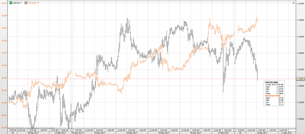 USDCAD has inched lower on the back of better than expected CMHC Housing Starts which rose to 253,700 in March vs. a forecast of 216,000.