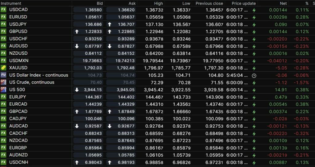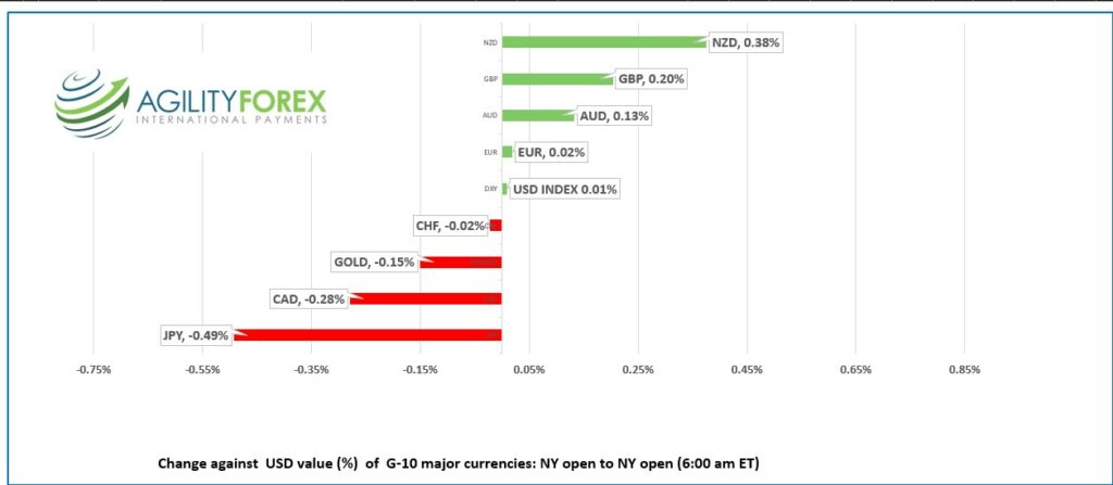 FX open, high, low, previous close as of 6:00 am ET